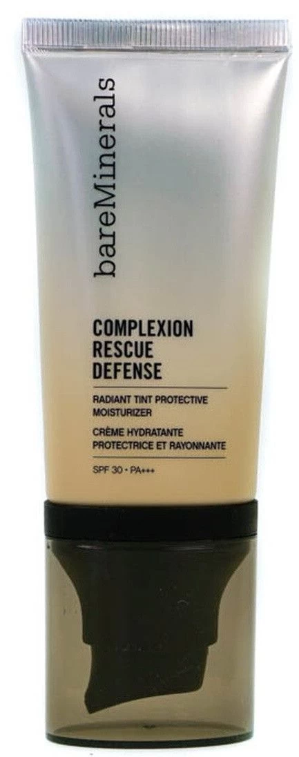 Complexion Rescue Defense Crema Hidratante con Color SPF30 de BareMinerals es una loción diaria liviana formulada con moléculas de azúcar para ayudar a bloquear las partículas contaminantes, extracto de cacao para ayudar a proteger contra los efectos dañinos de la luz azul y mineral SPF 30 para proteger contra el daño solar, para una protección óptima en interiores y exteriores .