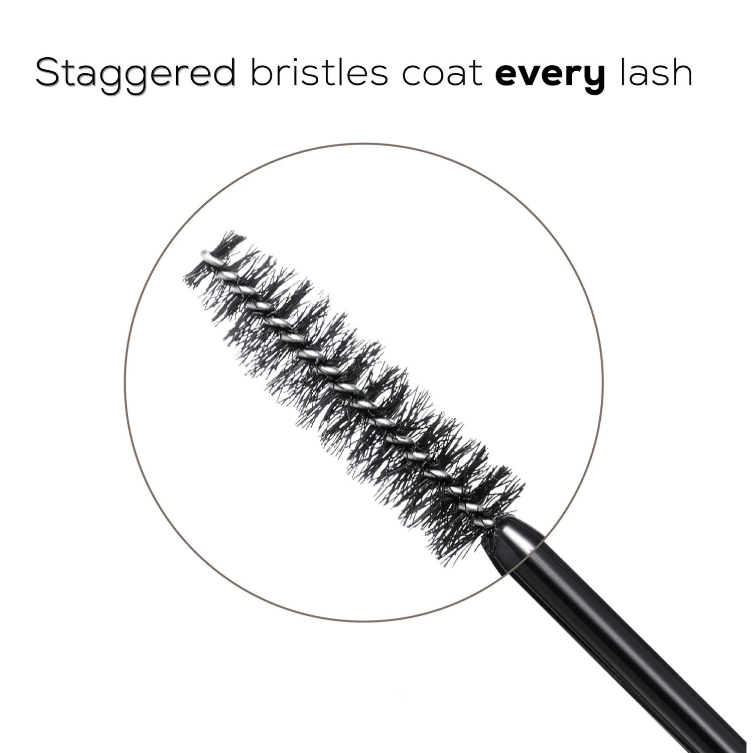 Mantén el aplicador horizontal y extiende el producto hacia arriba, desde la raíz hacia la punta, para alargar y elevar las pestañas. Trabaja de un lado a otro para lograr un volumen máximo y, a continuación, utiliza la estremidad cónica del aplicador para separar y definir. Aplica generosamente capas hasta conseguir el resultado deseado.