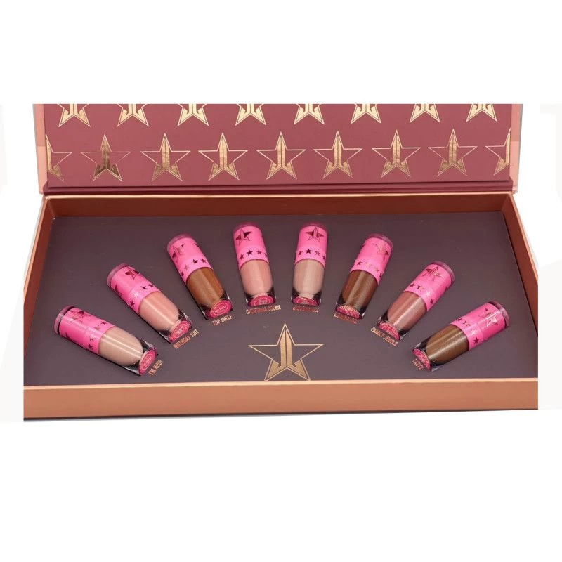Estuche con 8 mini labiales Velour de larga duración y acabado mate.
